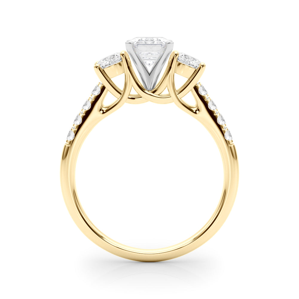Yellow gold Three-Stone Emerald Cut Diamond Pavé Band with Four-Prong Setting