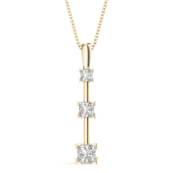Yellow gold Three-Stone Princess Cut Prong Set Pendant