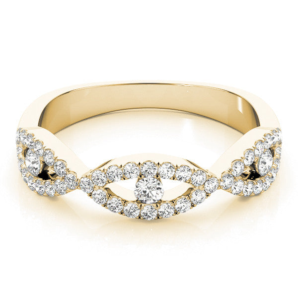 Yellow gold Infinity Twist Diamond Pavé Band with Round Stones and Prong Setting