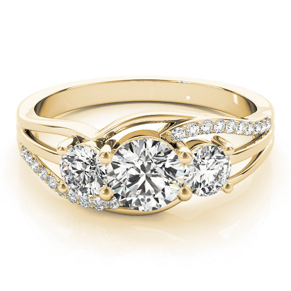 Yellow gold Three-Stone Round Cut Diamond Split Shank Prong Set Ring