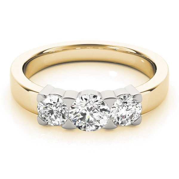 Yellow gold Three-Stone Round Diamond Classic Band with Prong Setting