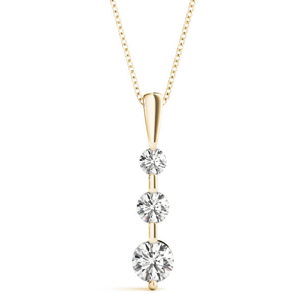 Yellow gold Three-Stone Round Diamond Prong-Set Pendant