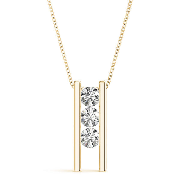 Yellow gold Vertical Channel-Set Round Diamond Bar Pendant